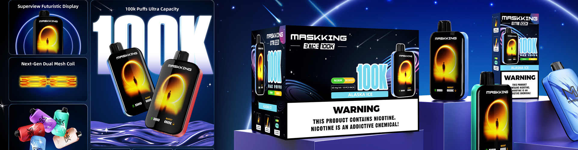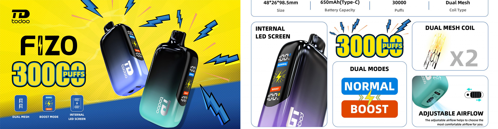 With up to 100 watts of power, adjustable via a knob on the switch, it offers a powerful, personalized vaping experience.